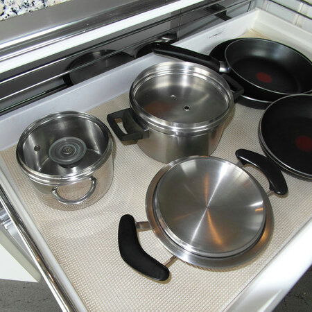 Vallen jouw keukenspullen ook altijd om als je de keukenlade open trekt? Met een antislipmat in je keukenkasten voorkom je dat spullen gaan schuiven of zelfs omvallen. Alles blijft netjes georganiseerd staan, zoals jij het had ingericht. Ook als je een caravan, camper of boot hebt weet je dat je bij elke beweging de kans loopt dat je glazen en andere serviesgoed in je keukenkastjes verschuiven of in het ergste geval omvallen. Leg deze antislipmat in elk laatje en kastje en je zult zien dat spulletjes veel beter blijven liggen en veel minder snel om zullen vallen.